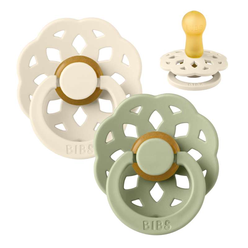 BIBS Boheme Sut - 2-Pak - Str. 2 - Naturgummi - Ivory/Sage