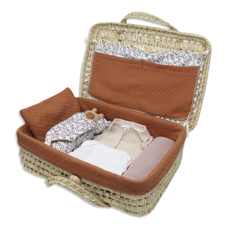Memories by Así Dukketøj - 43-46 cm. - Dukkekuffert i Flet - m. Indhold - Blomsterprint