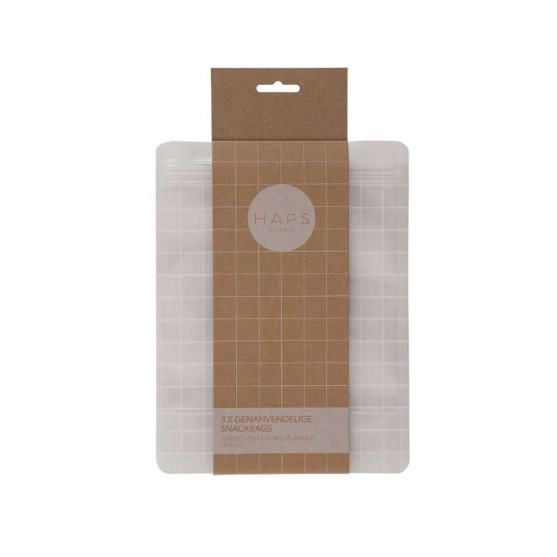 HAPS Nordic Genanvendelige Snack Bags - 3-Pak - 1000ml - Transparent Check