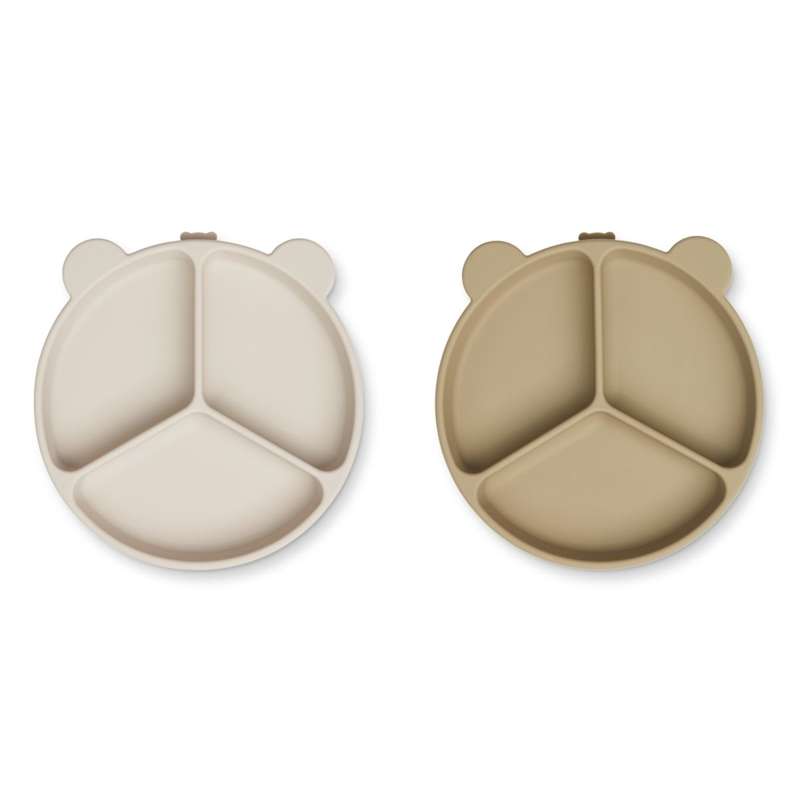 Liewood Stacy Skridsikker Ruminddelt Tallerken - 2-Pak - Sandy/Oat