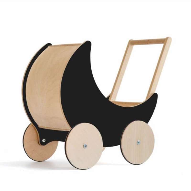 Ooh Noo Måneformet Dukkevogn i træ m. tavleeffekt - sort