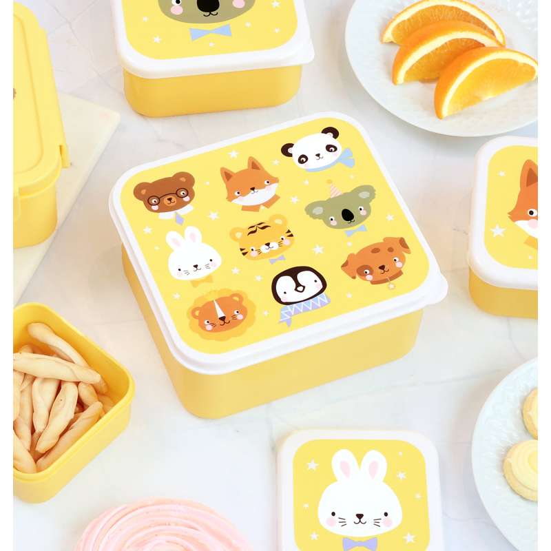 A Little Lovely Company Madkasse - og Snackbokssæt - 4 stk. - Animal Friends
