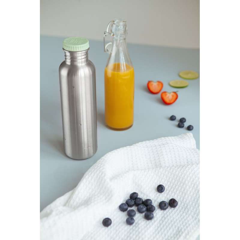 Flasken er udstyret med et skruelåg, men der kan tilkøbes en vippetud i yndlingsfarven.