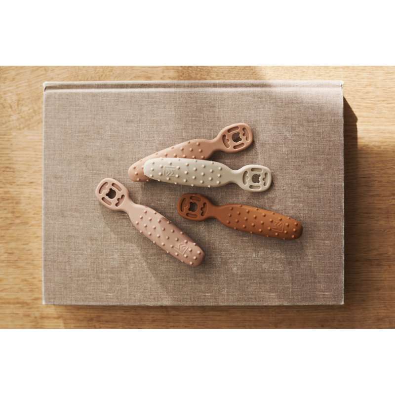 Varenummer: LIE-LW19686_1885Lad dine små begynde at lære at spise selv med den unikt designede Caelia skeer. Hullerne og den nubrede overflade på skeen sikrer, at mosen bliver siddende når din baby fører maden fra skålen op til munden og hjælper med at opbygge de små selvstændige madørers selvtillid. Skeer i et unikt design til babyer, der er ved at lære at spise selv Fremstillet i blødt og fleksibelt silikone Den numbrede overflade sørger for, at maden hænger fast når dit barn fører maden op til munden Brug den til forskellig slags mos Styrker finmotorikken og stimulerer følesansen Blid mod gummerne Kan kommes i opvaskemaskinen Højde (cm) 12; Bredde (cm) 2,5; Dybde (cm) 1,6