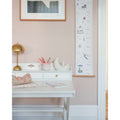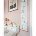 Varenummer: CAM-1614-P98-000-WWDen fineste, vintage-inspirerede Højdemåler, fremstillet i kraftigt FSC-certificeret papir med matchende trælisteophæng. Højdemåleren er udsmykket med smukke, håndtegnede dyr, frugter og planter, der er kendt og elsket fra vores Alfabet- og Talplakater, og den giver mulighed for at måle og registrere barnets højde på en sød og poetisk måde, hvor barnet starter som en lille mus og ender som en giraf. Specifikationer 2x100x20 cm Materiale og pleje 250 g. papir / birketræ Må ikke vaskes. Tør kun af med en tør klud.