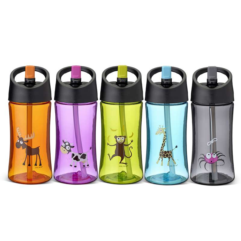 Den fine drikkedunk rummer 0,35 L og er med sugerørsfunktion. Det er en ideel drikkedunk til de allermindste, da det modvirker spild og lækage, og da de hurtigt selv kan betjene vandflasken. Flasken er desuden konturformet, hvilket gør den endnu nemmere at holde på for små hænder.