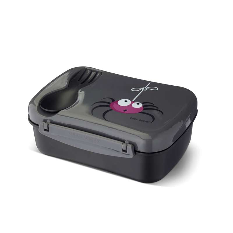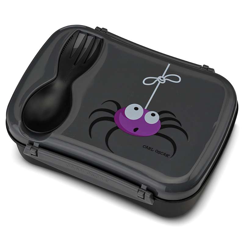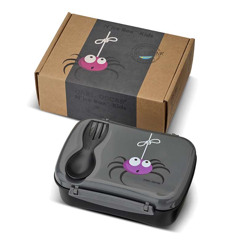N'ice Box Kids med køleelement fra Carl Oscar. Flot grå farve med en sød edderkop på låget.