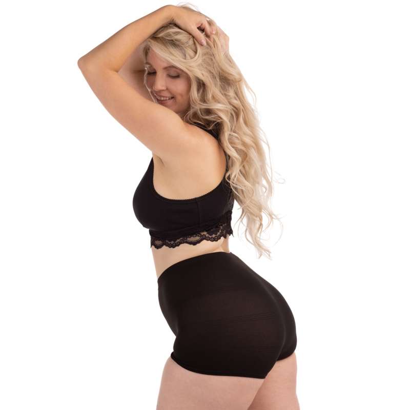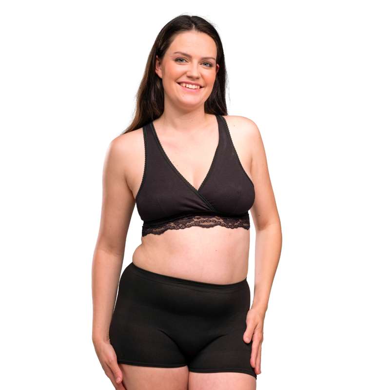 Ny og forbedret udgave af hospitalstrussen fra Carriwell, lavet med en sømløs teknologi, så den har stræk og kan samtidig beholde sin facon, gennem både graviditet og efter fødslen.