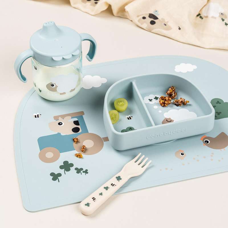 Done by Deer Dækkeserviet - Silikone - Tiny Farm - Blå