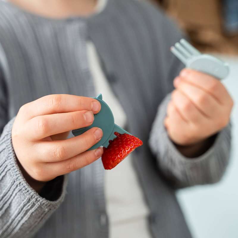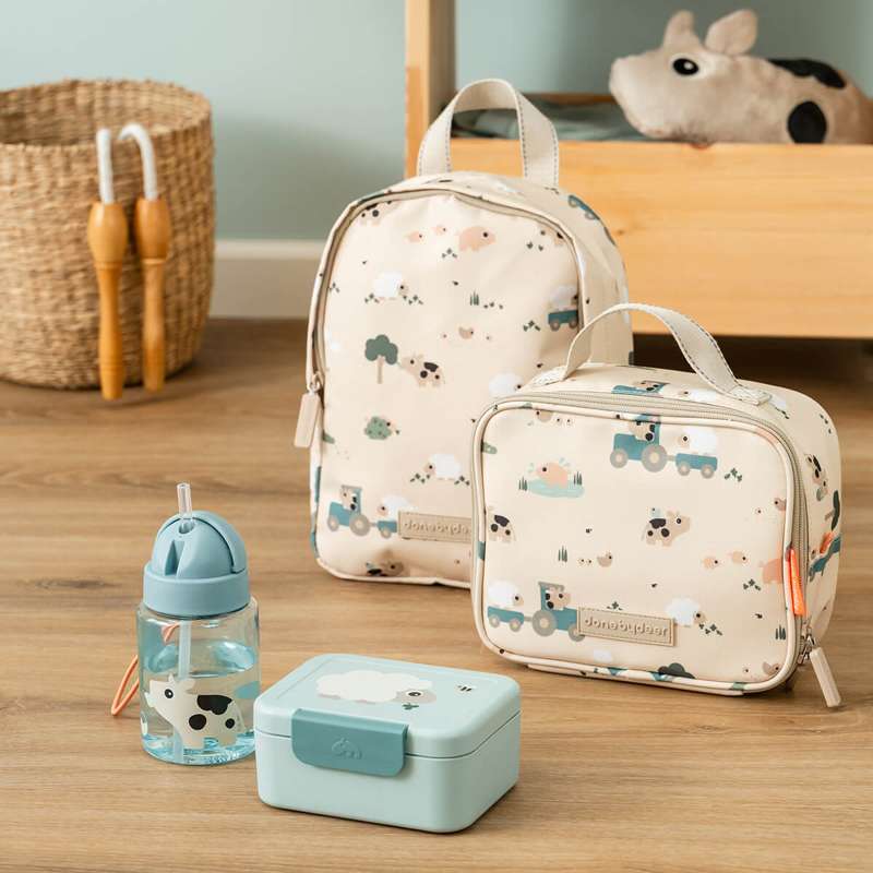 Done by Deer Lille Madkasse m. Snackpinde - Tiny Farm - Blå