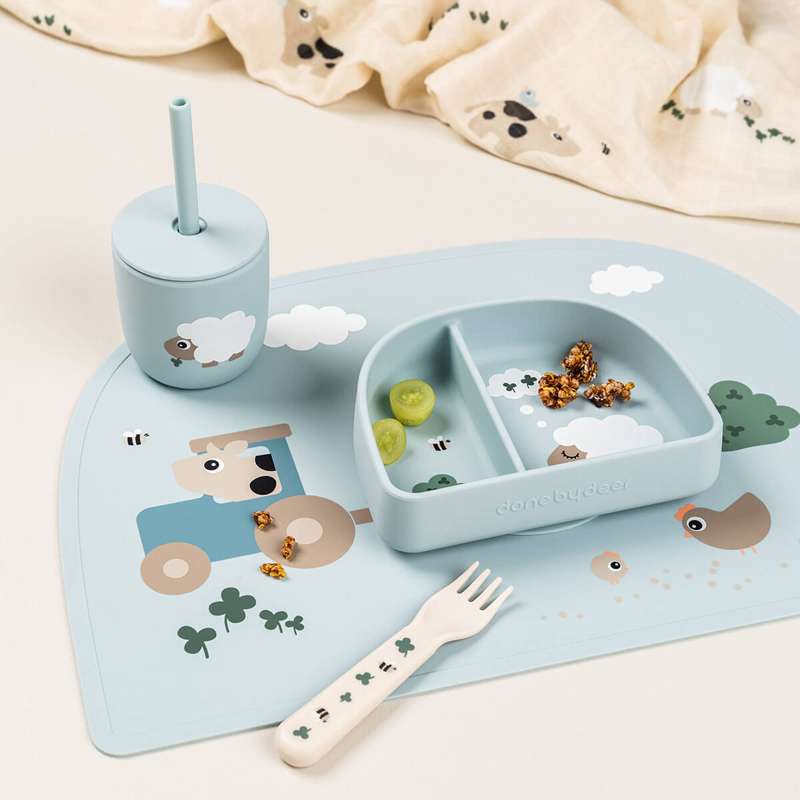 Done by Deer Sugerørskop - Silikone - 2 stk. - Tiny Farm - Blå