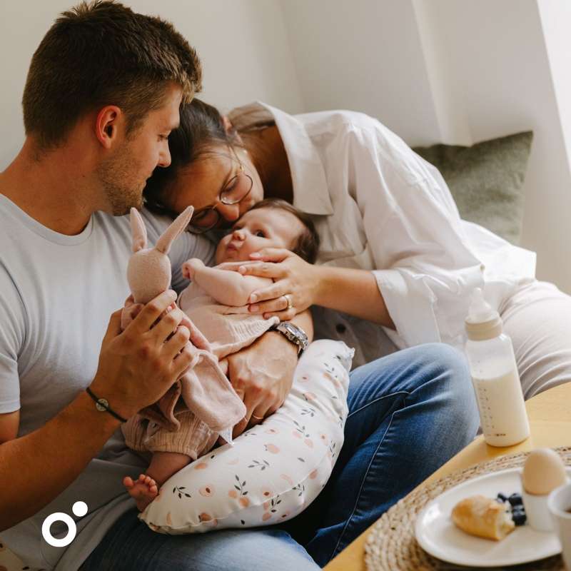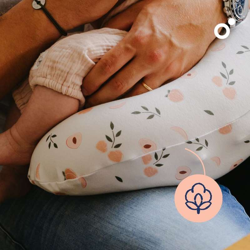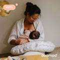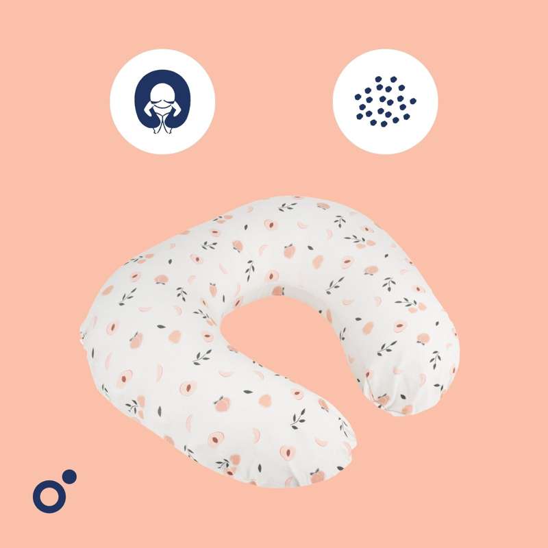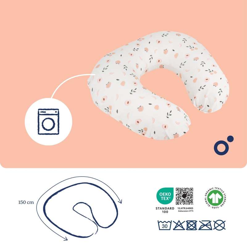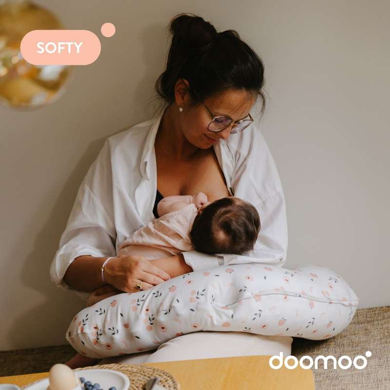 Den runde Doomoo-ammepude giver muligheden for at sidde godt rundt om mors mave. Puden er fyldt med små EPS-kugler, der dannes efter mor og baby's krop. Det er blødt og behageligt og bevarer sin fylde gennem amning uden at synke sammen. På denne måde mister babyen ikke grebet om brystvorten og får en optimal ammeposition.