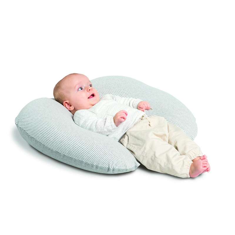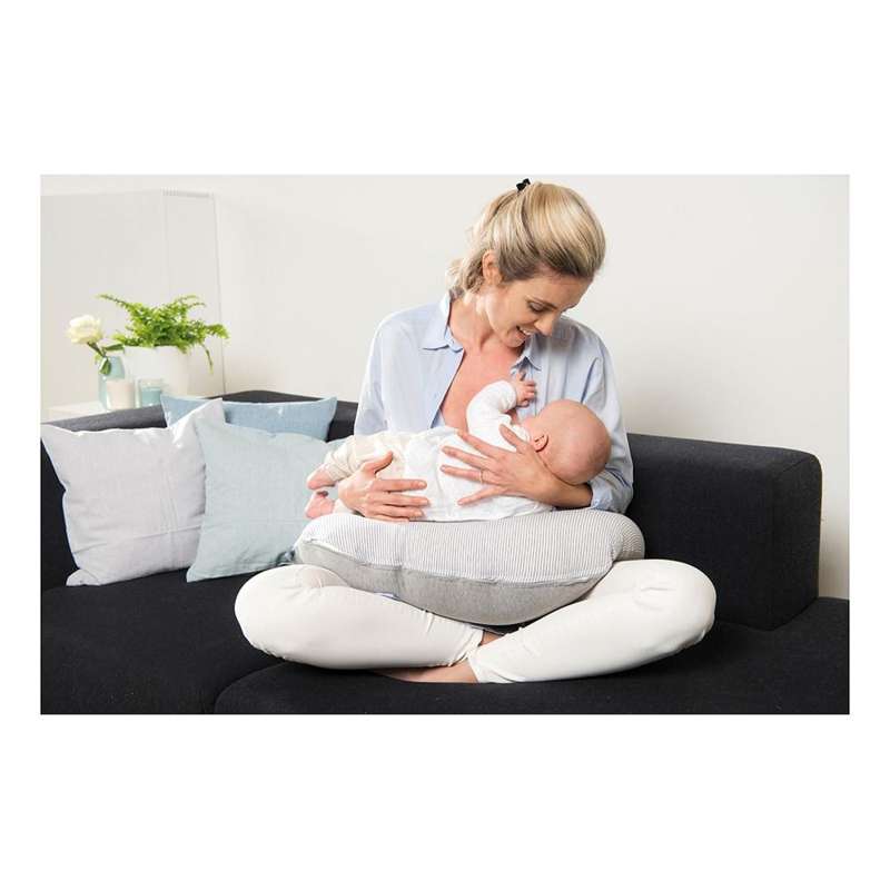Den runde Doomoo-ammepude giver muligheden for at sidde godt rundt om mors mave. Puden er fyldt med små EPS-kugler, der dannes efter mor og baby's krop. Det er blødt og behageligt og bevarer sin fylde gennem amning uden at synke sammen. På denne måde mister babyen ikke grebet om brystvorten og får en optimal ammeposition.