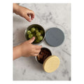 Varenummer: HAP-H1052-olive3 lette og holdbare beholdere til madopbevaring hjemme eller på farten. Med 3 lækagesikre låg af silikone, der er nemme at åbne og lukke, kan disse beholdere indeholde alt fra en håndfuld nødder, dip til dine grøntsager eller endda flydende sauce. Er beholderne tomme eller ikke i brug, kan de nemt staples i hinanden og optager derved minimal plads i køkkenskuffen eller den tomme madpakke. FUNKTIONER: - Langtidsholdbar. Stål tåler rigtig meget og går ikke i stykker, når det falder på gulvet eller lignende. - Slutter helt tæt: Ingen lækage - Opvaskemaskine sikker (Ingen mikrobølgeovn) - Ikke giftig: Fri for BPA, BPS, phtalater og bly Om materialet: Rustfrit stål er intet mindre end et fantastisk materiale. Det er ekstremt holdbart, kan holdes lugt- og smagsfrit og er 100% genanvendeligt uden at kvaliteten mindskes. Vi bruger kun det bedste, fødevaregodkendte 18/8 rustfrie stål, også kaldet 304 i fx vores vandflasker, madkasser og sugerør. Denne type indeholder ingen kemikalier eller toksiner, som kan overføres til mad eller drikke i beholderen. I vores produkter stammer minimum 60% af alt stål fra genanvendt materiale. Ud over at være et af de mest miljøvenlige og holdbare materialer, er rustfrit stål også let at rengøre, lugtfrit, toksin-frit og nemt at holde skimmel-frit -perfekt til opbevaring og transport af mad og drikke.