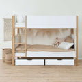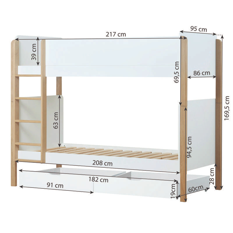 Blend køjesengens alsidige design gør det muligt at omdanne den til to separate juniorsenge. Sengen kan således vokse med barnet og tilpasse sig skiftende behov.