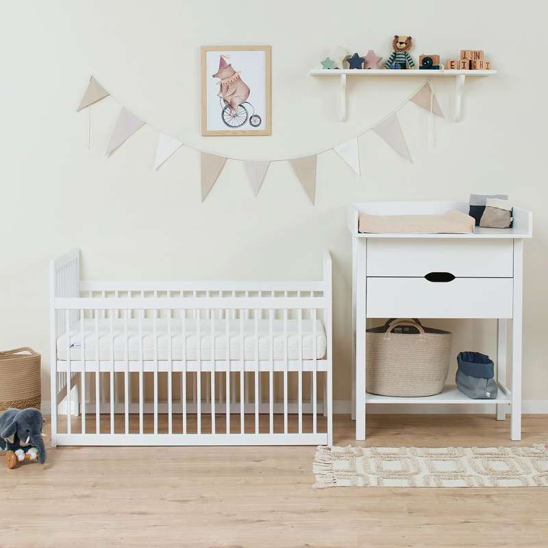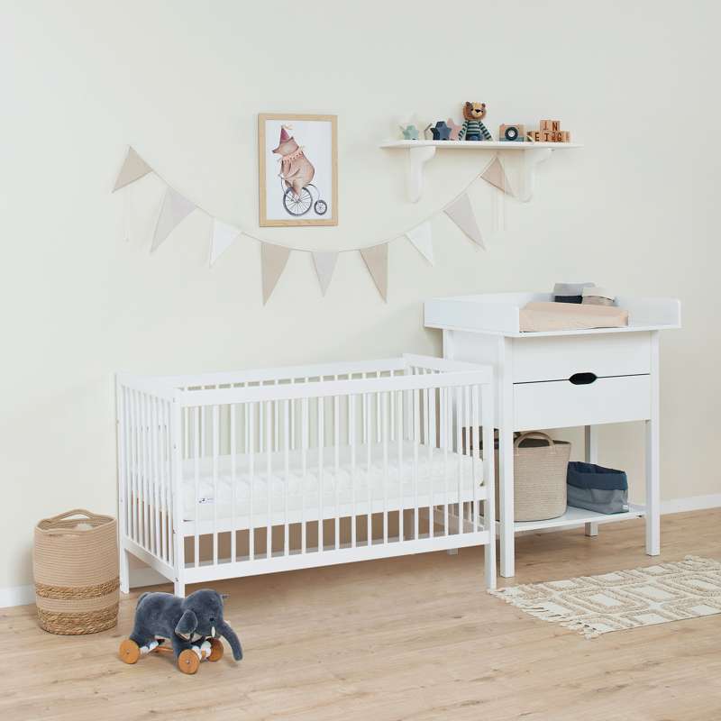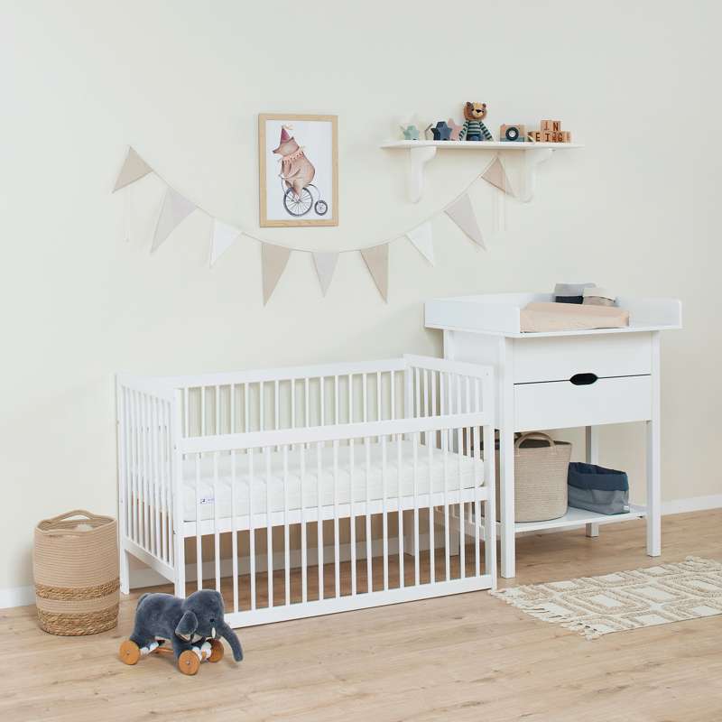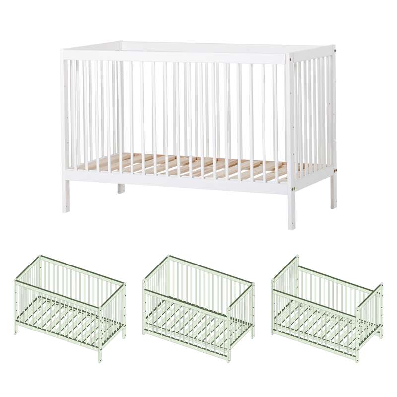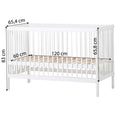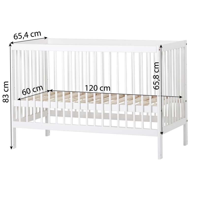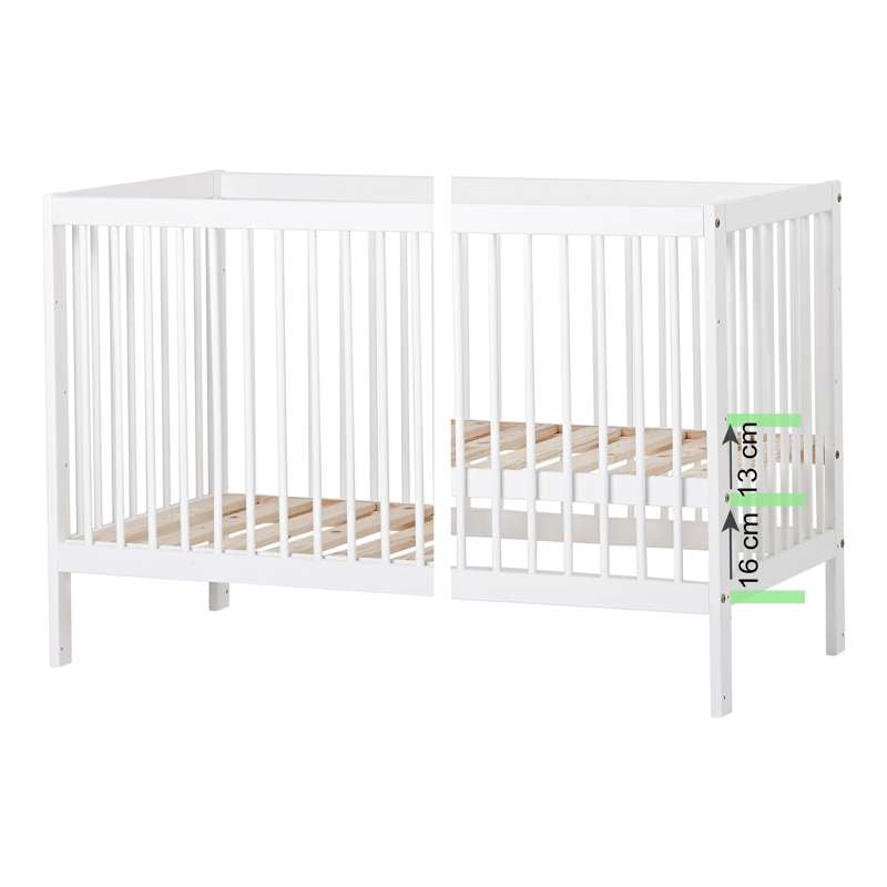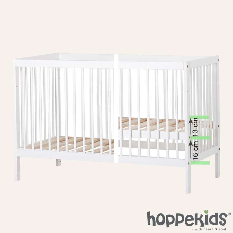 Varenummer: HOP-36-4066-32-06FIDA-MARIE babysengen er en tidløs, enkel tremmeseng designet med både sikkerhed og komfort i tankerne. Den passer til en standardmadras på 60x120 cm og har en justerbar bund med tre forskellige højdeindstillinger samt praktiske sideheste, der kan hæves eller sænkes med 16 cm. Dette skåner din ryg, samtidig med at det sikrer, at din lille altid sover sikkert.