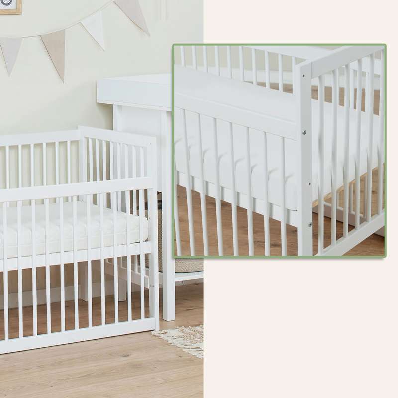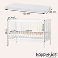 Varenummer: HOP-96-45-001-PFIDA-MARIE babysengen er en tidløs, enkel tremmeseng designet med både sikkerhed og komfort i tankerne. Den passer til en standardmadras på 60x120 cm og har en justerbar bund med tre forskellige højdeindstillinger samt praktiske sideheste, der kan hæves eller sænkes med 16 cm. Dette skåner din ryg, samtidig med at det sikrer, at din lille altid sover sikkert.