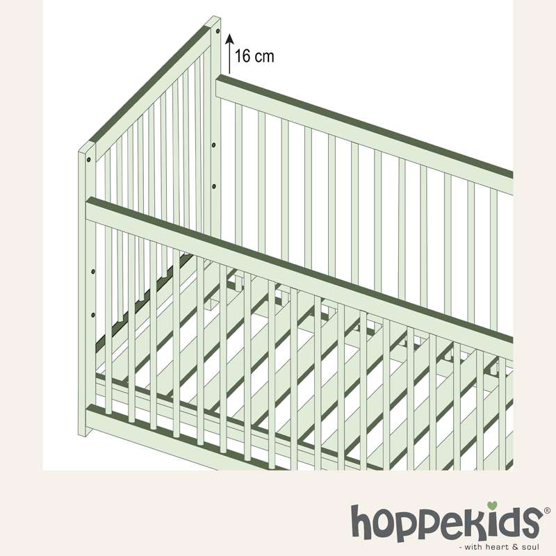 - 16 cm over gulvet – brug denne indstilling, når dit barn kan stå, så de er sikre i tremmesengen.
