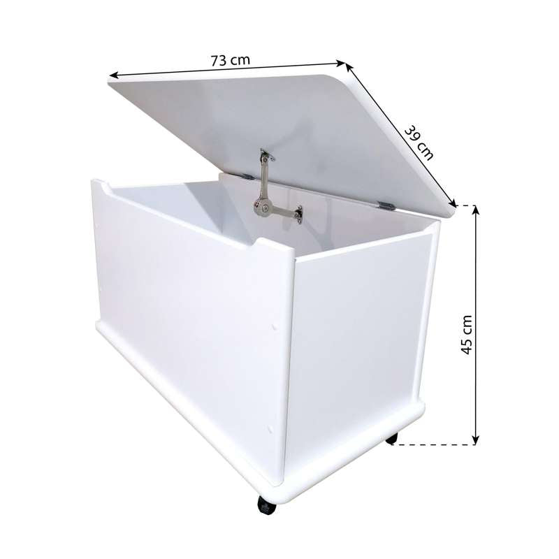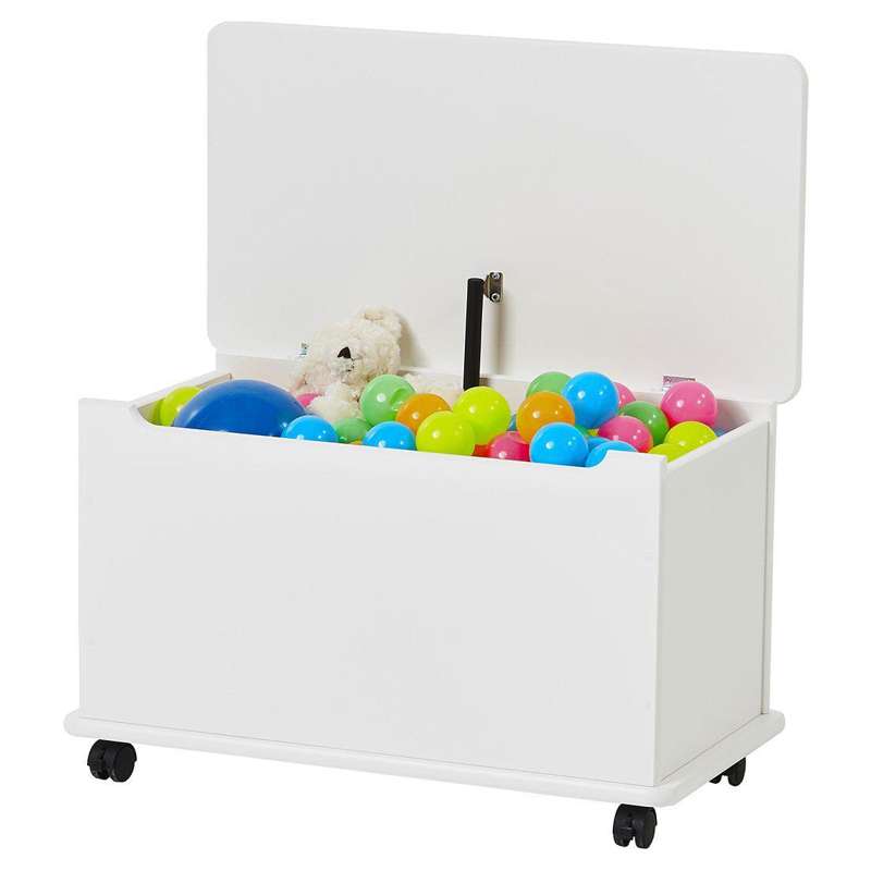 Smart og praktisk legetøjskiste på hjul fra Hoppekids. Kisten har fire hjul hvoraf to af dem kan låses samt en lukkemekanisme, der holder låget i den åbnede position, så låget ikke smækker. Kisten er overfladebehandlet med miljøvenligt, vandbaseret lak.