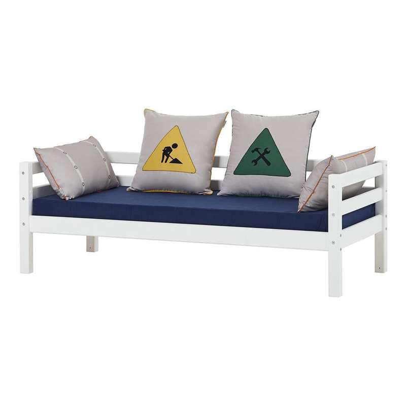 Sjovt pudesæt med smarte skilte fra universet Construction fra Hoppekids. Pudesættet består af 2 puder i størrelsen 50x50 cm. leveres med betræk i bomuld og fyld af skum.