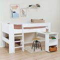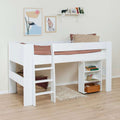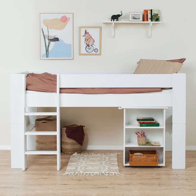 Varenummer: HOP-SFK-A14-1Hoppekids PURE halvhøjseng med skrivebord fås i en tidløs og klassisk hvid farve, designet med komfort og sikkerhed i tankerne. Med en generøs størrelse på 90x200 cm tilbyder sengen rigelig plads til det voksende barn og tilstrækkelig bevægelsesfrihed til en god nats søvn. Skrivebordet skaber et dedikeret arbejdsområde til studier, tegning eller kreative aktiviteter.