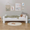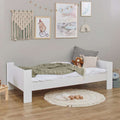 Juniorsengen er konstrueret af MDF, som sikrer en solid og pålidelig base, der vil vare i årevis. Den glatte overflade er let at rengøre og opretholde, hvilket gør det til en ideel løsning for forældre, der værdsætter både stil og funktionalitet. Overfladen er behandlet med en vandbaseret lak fri for unødige kemikalier og skadelige stoffer.