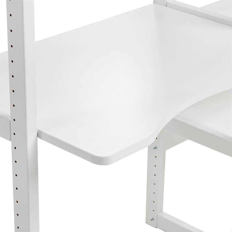 Denne smarte reol fra Hoppekids' serie, STOREY, byder på både praktisk opbevaring og en god arbejdsplads. Både bord og hylder kan placeres i 56 forskellige positioner, som gør det nemt at indstille den mest optimale arbejdshøjde og ikke mindst, at få plads til både høje og lave ting på hylderne.