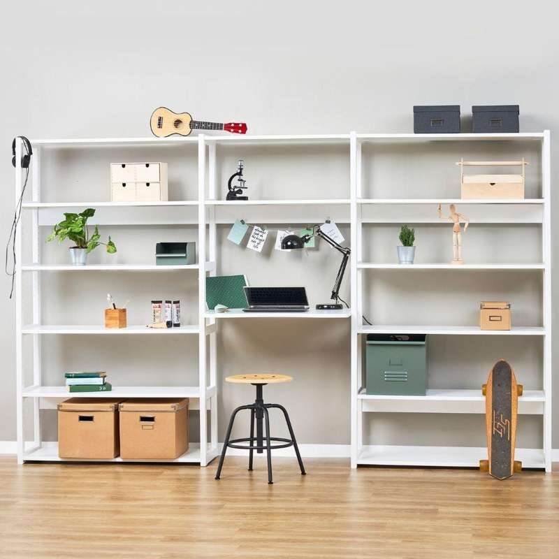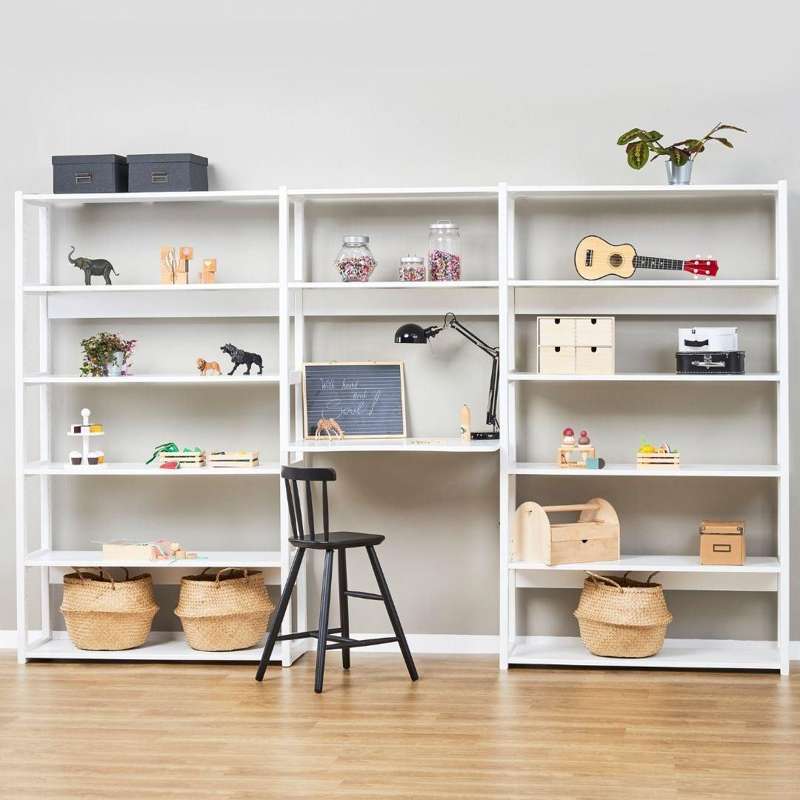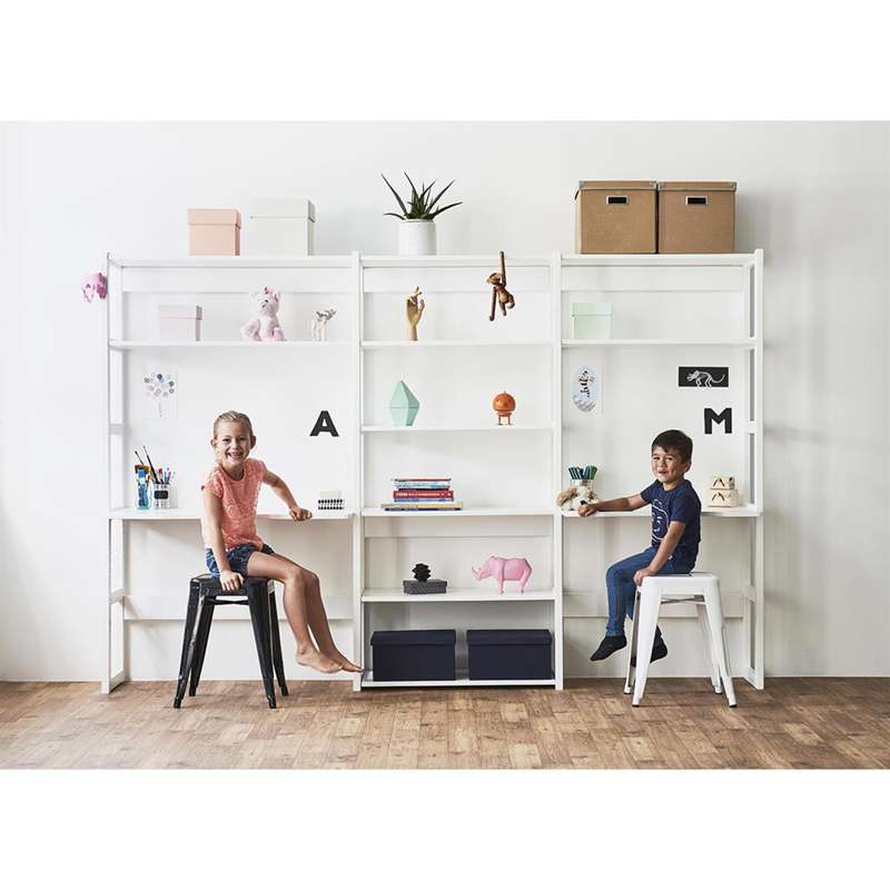 Hoppekids STOREY - Reol - 3 Sektioner m. 14 Hylder og Skriveplade - 80 cm. - Hvid