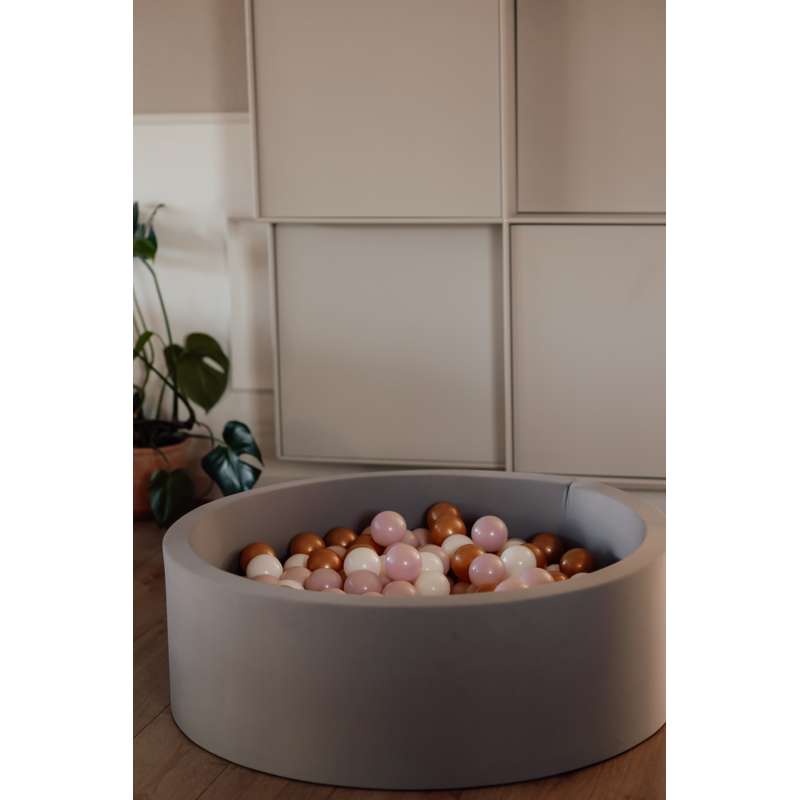 Boldbassinet er lavet i Standard PU skum og betrukket i Oeko Tex Standard 100 certificeret jersey - 80% bomuld, 20% polyester. Der medfølger i alt 300 bolde Ø7 cm. i bundlen