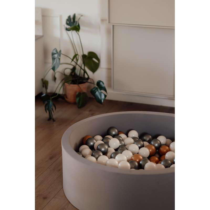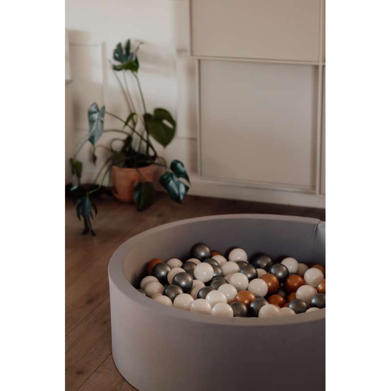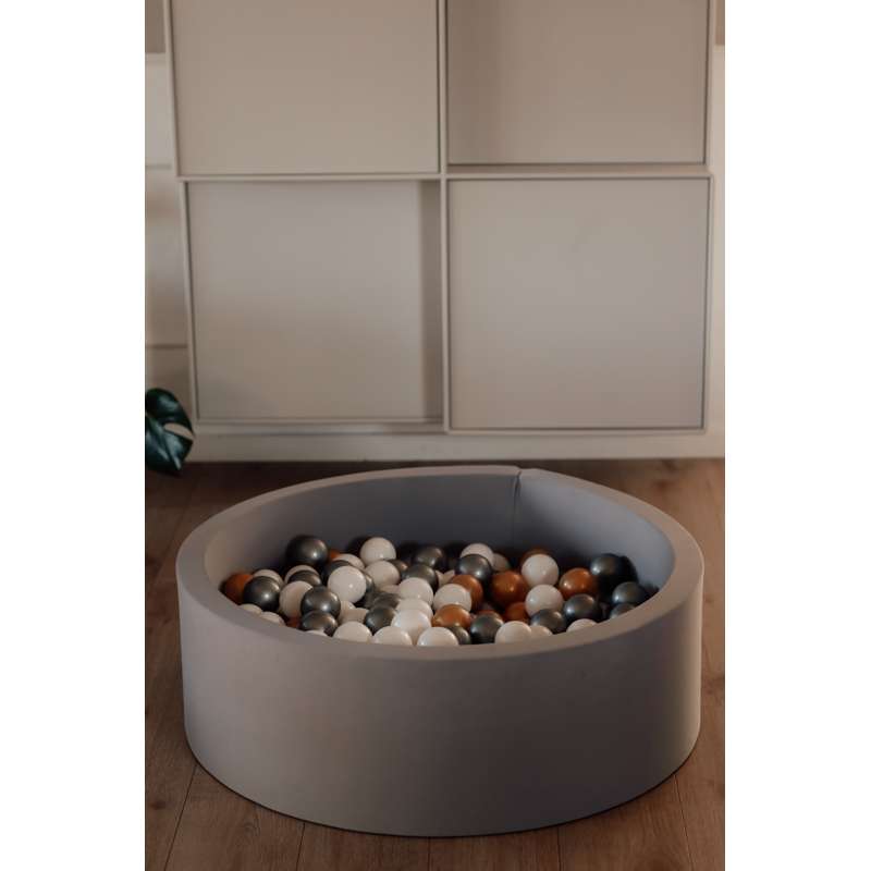 Boldbassinet er lavet i Standard PU skum og betrukket i Oeko Tex Standard 100 certificeret jersey - 80% bomuld, 20% polyester. Der medfølger i alt 300 bolde Ø7 cm. i bundlen