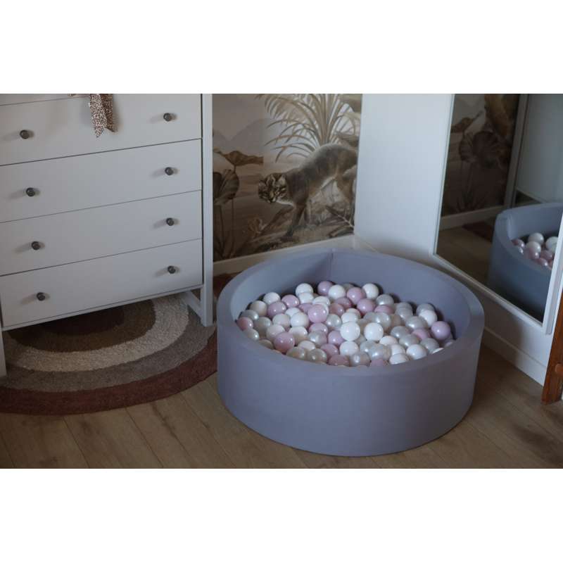 Boldbassinet er lavet i Standard PU skum og betrukket i Oeko Tex Standard 100 certificeret jersey - 80% bomuld, 20% polyester. Der medfølger i alt 300 bolde Ø7 cm. i bundlen