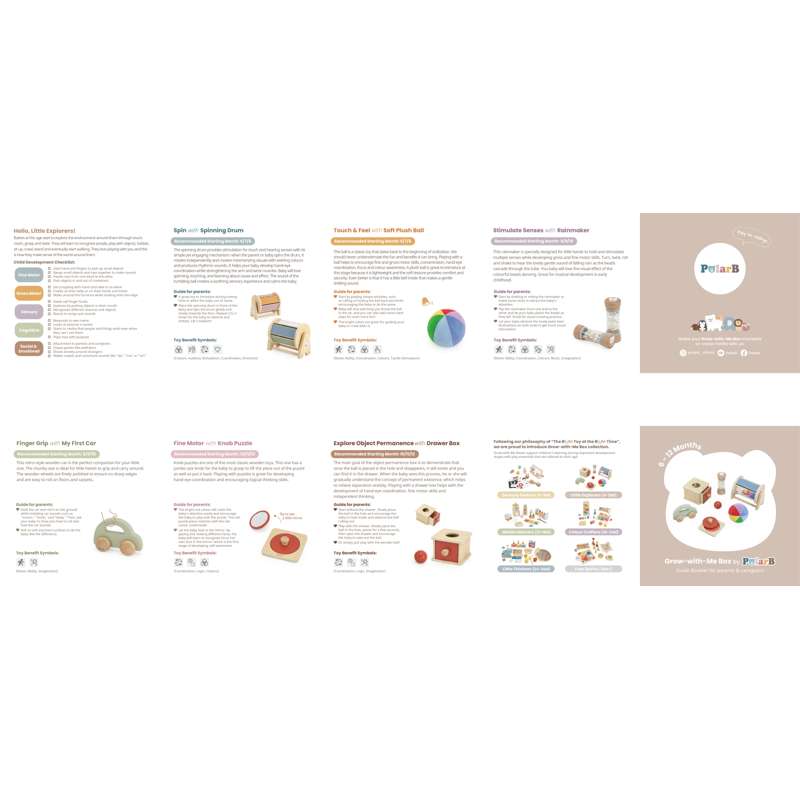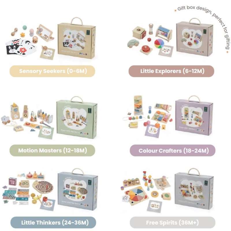 Grow-with-Me-bokse støtter børns læring under vigtige udviklingstrin med legeartikler, der er tilpasset deres alder. De sparer også forældre tid og energi ved at udvælge alderssvarende, sikre og lærerige legetøj fra markedet.