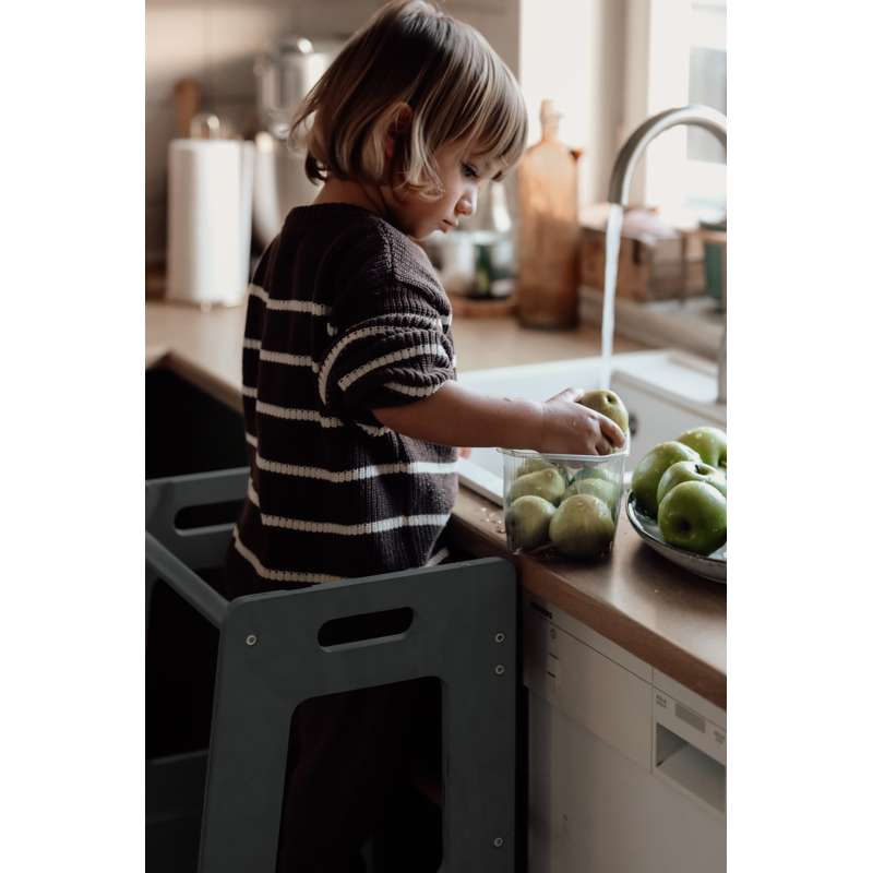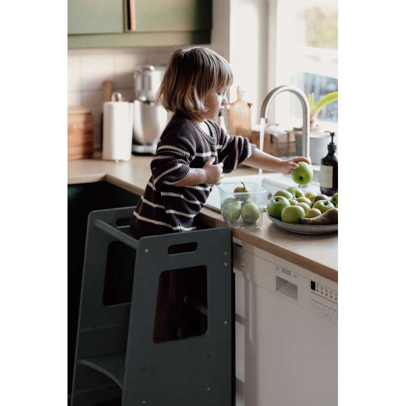 Et læringstårn der let flytbart, så barnet også selv kan vælge at være med i køkkenet eller andre aktiviteter i voksenhøjde.