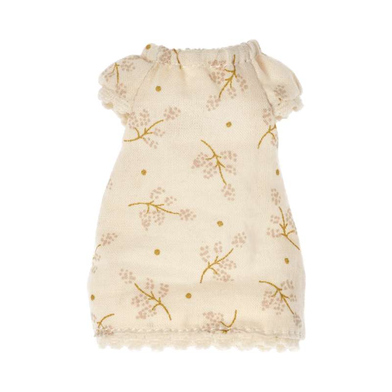 MAI-16-1784-02 - Maileg Tøj Til Storesøster Mus - Natkjole m. Blomster - Råhvid