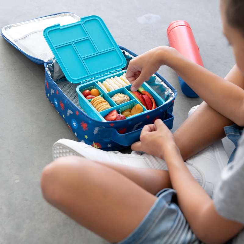 Madkassen rummer 500 ml. og er inddelt i to rum og lukkes med en klap, der er nem at betjene, selv for små fingre. Den er perfekt til den lille sult, enten på farten, eller som madkassen til formiddags- eller eftermiddagsmad i skole, børnehave eller vuggestue.