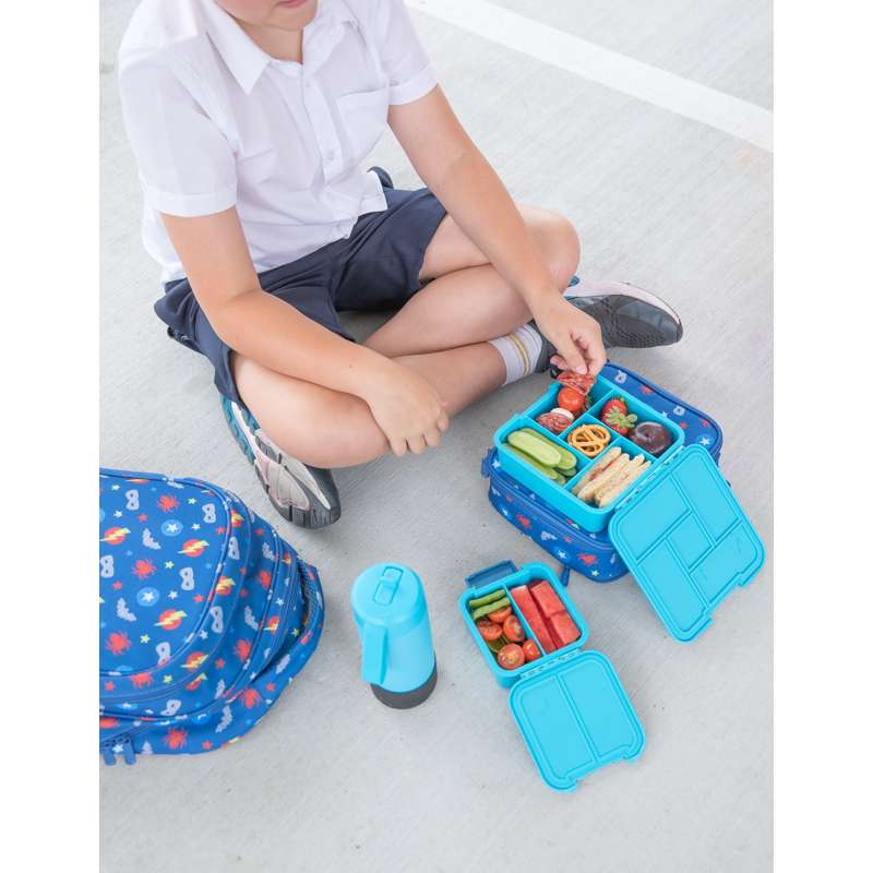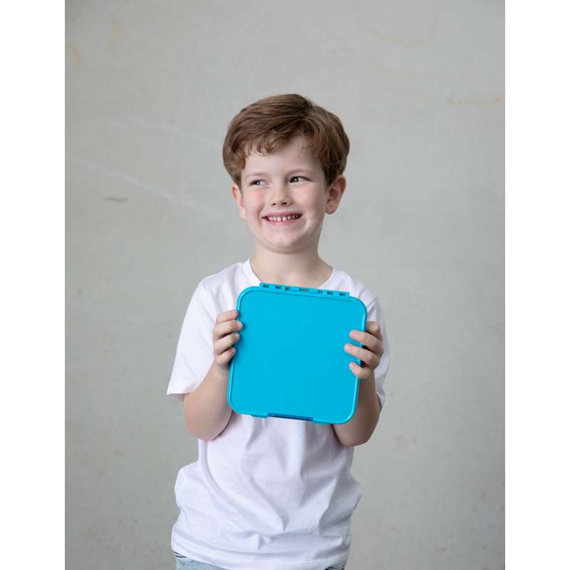 I låget på madkassen sidder en silikoneforsegling, der lukkes ned over skillevæggene i madkassen. Dette gør at alle rum, der er forseglet slutter tæt, og dermed kan du fint servere tyktflydende dressing, ketchup, hummus, pesto mv. i din Little Lunch Box. Læg dog ikke væskende/vandige madvarer i rummene.