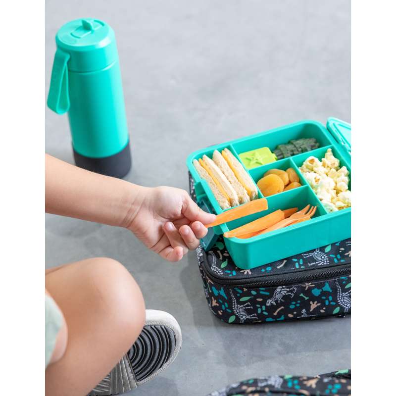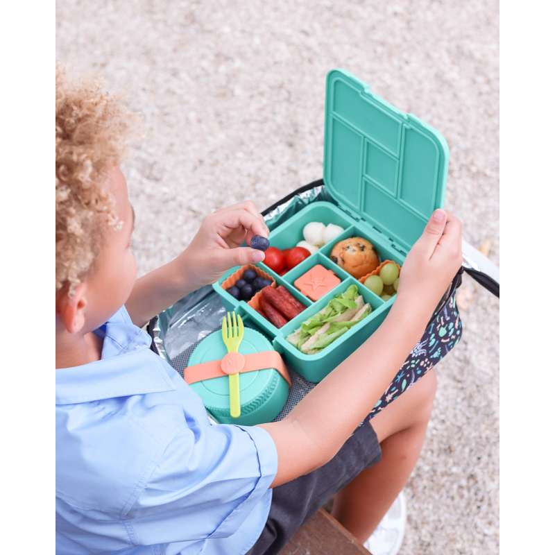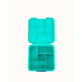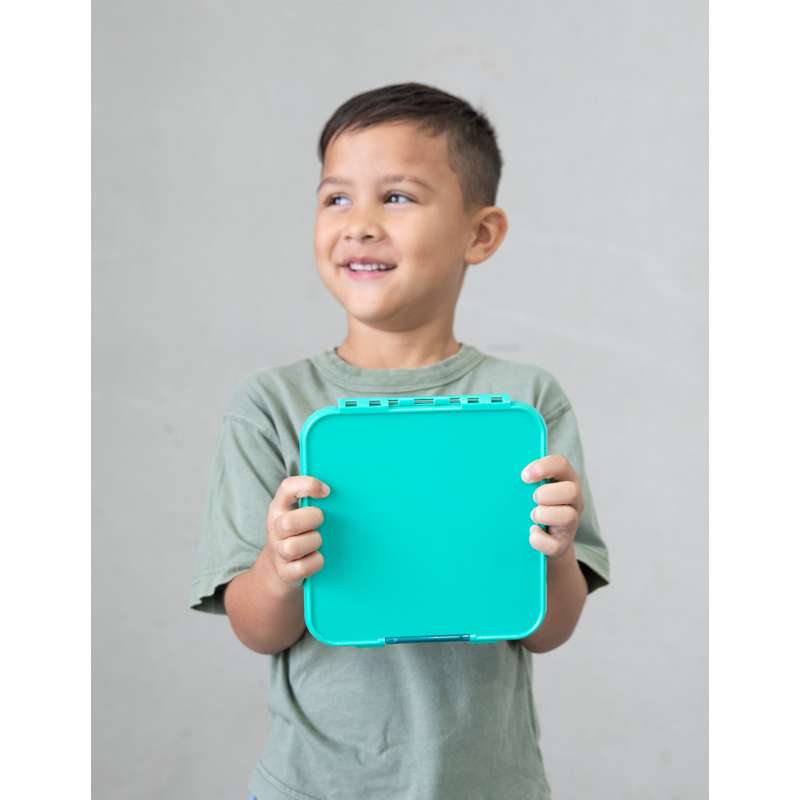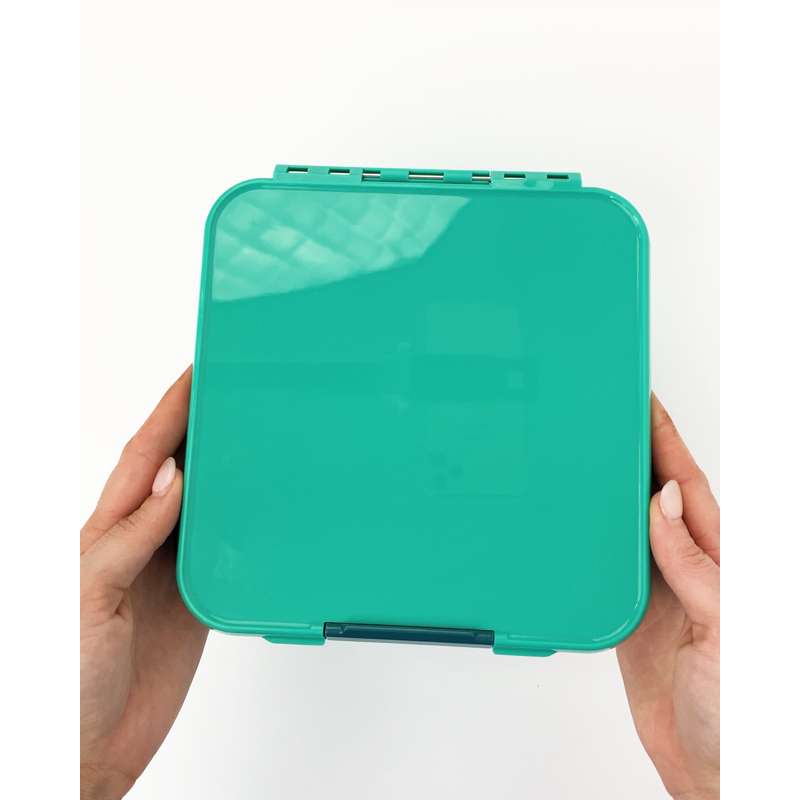 I låget på madkassen sidder en silikoneforsegling, der lukkes ned over skillevæggene i madkassen. Dette gør at alle rum, der er forseglet slutter tæt, og dermed kan du fint servere tyktflydende dressing, ketchup, hummus, pesto mv. i din Little Lunch Box. Læg dog ikke væskende/vandige madvarer i rummene.