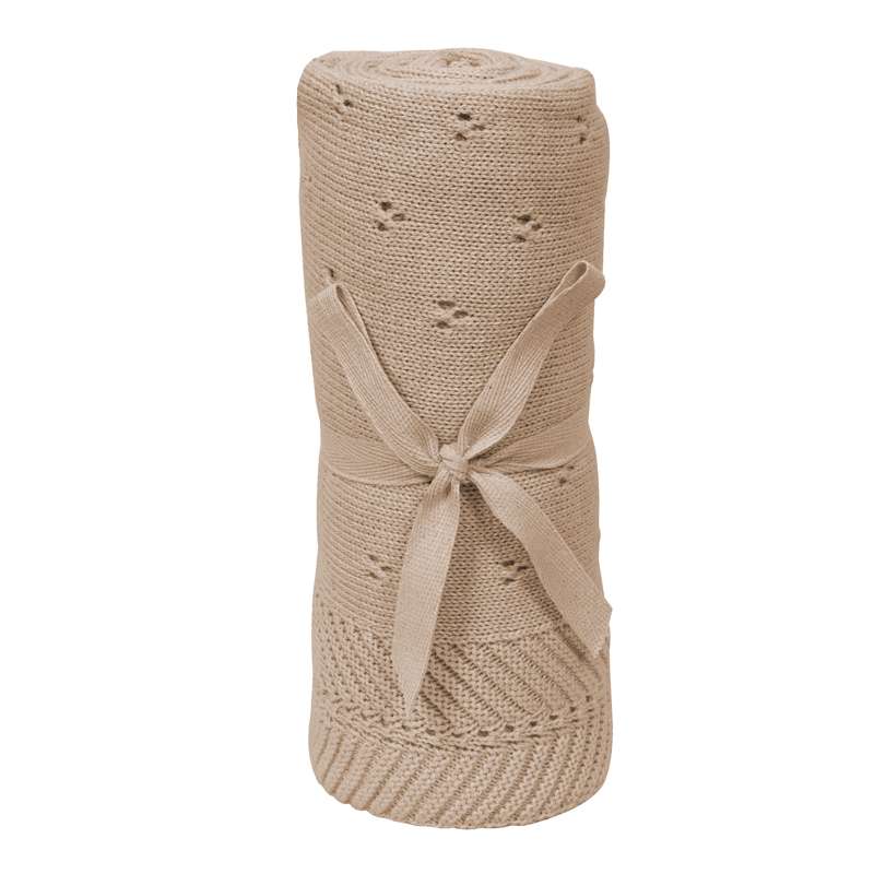Oh'Naturel Strikket Babytæppe - Økologisk Bomuld - 80x100 cm. - Sand