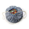 Men slut med det! For med de super smarte Play & Go bæretasker, så har du et legetæppe og legetøjsopbevaring i ét. Lad mini lege på opbevaringstæppet og når dagen er omme, så strammer du blot snøren i tæppet og straks er der smuk samling på alle småtterierne.