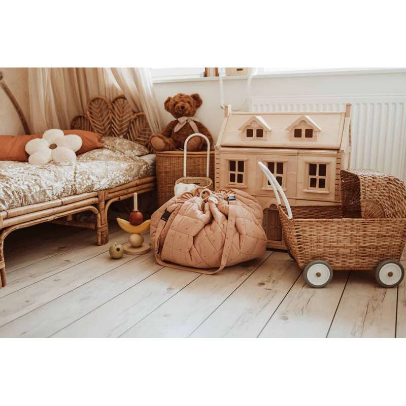 Tæppet kan fyldes med legetøj og bøger, så det også er ideelt til ture i parken eller på besøg hos venner. Et funktionelt og charmerende valg til aktive familier.