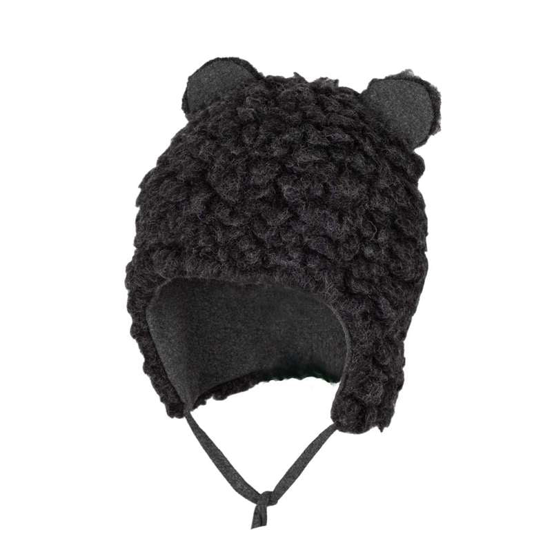 Ørehue i sødt bjørnedesign, lavet af superblødt plys i 85% økologisk uld og 15% Tencel plys, delvist foret med jersey i økologisk bomuld – GOTS-certificeret. Designet sikrer en optimal pasform og beskytter barnets sarte hud.