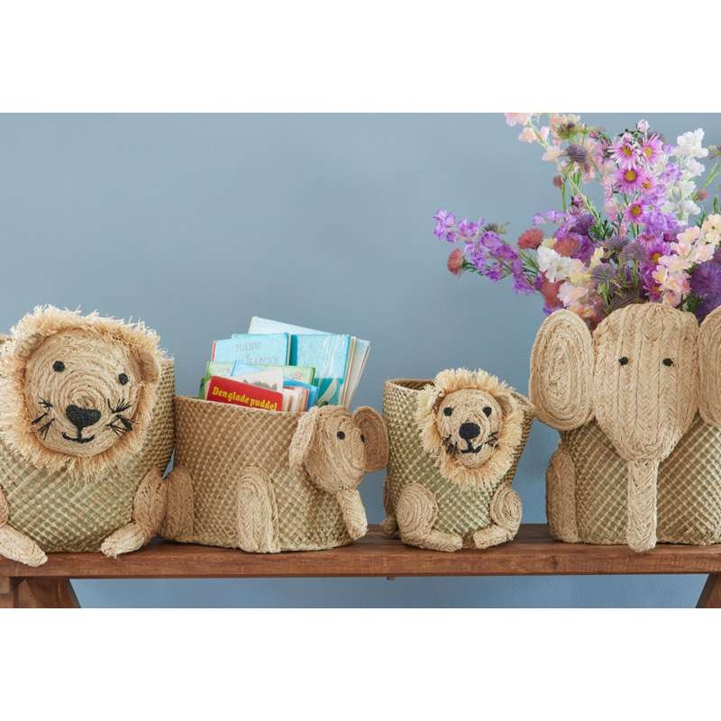 RICE Søgræs Opbevaringskurv - Jungle Animals - Lille Løve - Natur