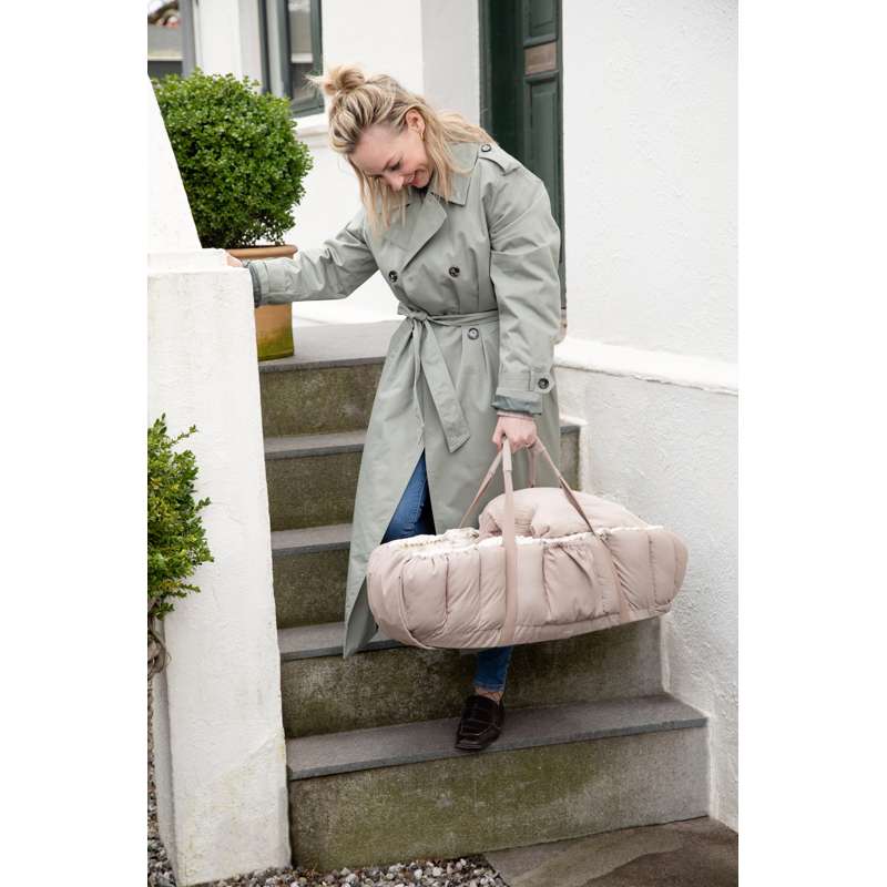 Babynesten passer i barnevogne og kombivogne, og kan derved erstatte den traditionelle lift. Når siderne er slået ned, fungerer den som et stort, blødt legetæppe, hvor baby også kan skiftes, hvis behovet opstår.