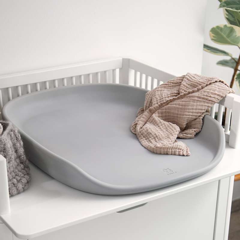 Den bløde kant sikrer samtidig, at det aktive barn, som er i bevægelse under bleskiftet, ikke slår hovedet imod en hård bagvæg eller puslebordets kant.