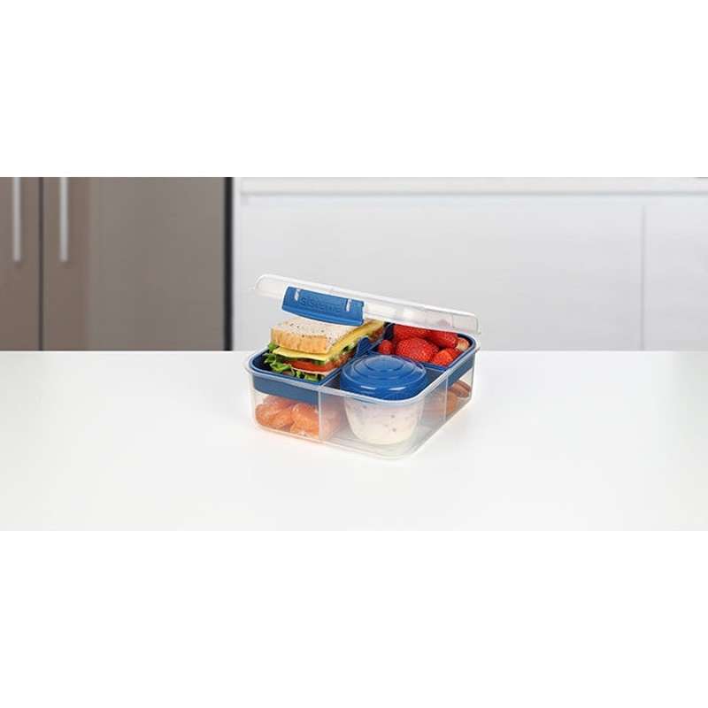 Sistema Bento Madkasse - Ruminddelt med Bæger - 1,25L - Klar/Ocean Blue