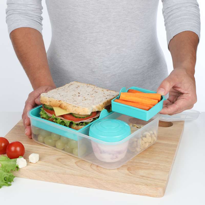 Sistema Bento Madkasse - Ruminddelt med Bæger - 1,65L - Klar/Minty Teal